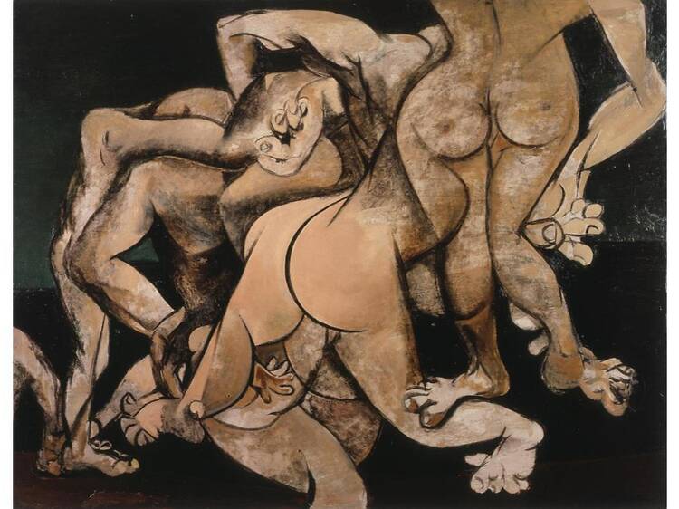 絵画では、パリの芸術に憧れ「池袋モンパルナス」 に集った画家たちが、1930年代以降、次第に戦争へと巻き込まれていく中で、時局に抗い個人の創作を追求した新人画会の作品を紹介。靉光(あいみつ)、麻生三郎、鶴岡政男、寺田政明、松本竣介らの絵画を通して、戦争の時代に不安を抱えながらも制作に向き合った画家たちの姿を浮かび上げる。