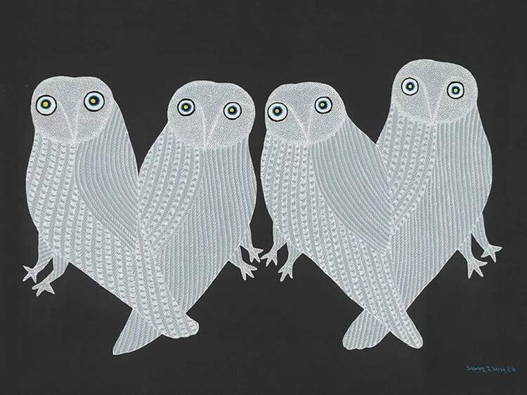 第2章となる本展では、中央インドのゴンド族のルーツや、ゴンドアートの本質的な特徴である「Signature」の表現に焦点を当てる。新作を中心とした約40点を通して、多彩なスケールで描かれる生命の輝きを色彩豊かに体感できるだろう。