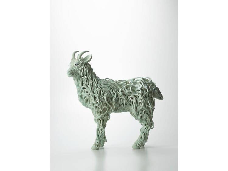 「YOD Gallery」で、動物をテーマとし、陶に装飾を重ねた立体作品を制作する秋永邦洋の個展「うつろなかたち」が開催。硬質さと繊細さが共存し、静けさの中に力をたたえる作品群を紹介する。