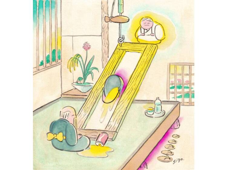 「NEW PURE +」で、シュールで痛快愉快な世界観を手がけるイラストレーター、死後くんの個展が開催。テーマを「囲炉裏に囲まれて」とした作品群を紹介する。