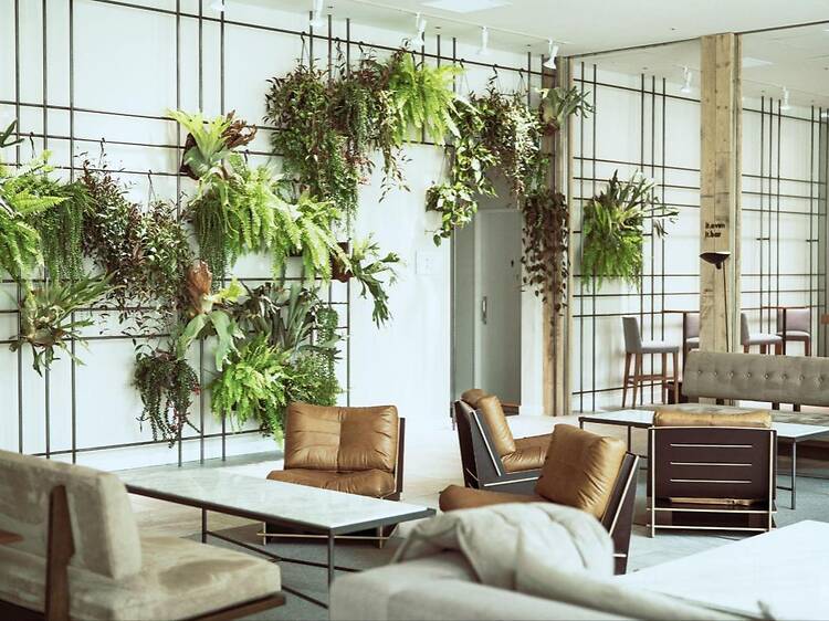 地上15メートルに位置するラウンジ「it. living」は、ボタニカルな空間に高品質サウンドシステムと超音波技術を組み合わせ、居心地の良い時間を演出。ナチュラルなワーキングデスクや緑あふれるウッドベンチを備え、リビングルームのようにくつろげる。