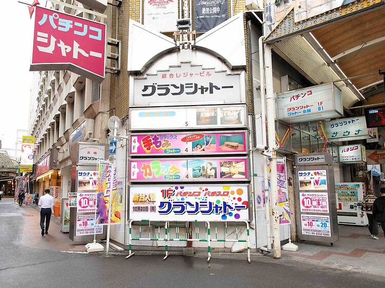 時代の変化とともに姿を変え、現在はパチンコ、ゲームセンター、カラオケ、サウナが営業中。中でも5階の「男性専用サウナ」には、高温・低温サウナに加えて、大浴場やジェットバス、水風呂を完備している。広々とした休憩スペースもあり、ひと汗かいた後はビールで一杯決めたくなるだろう。