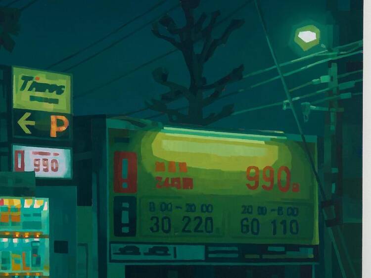 森本は、バロック絵画や20世紀初頭のアメリカンリアリズムに通じる視覚言語を参照しながら、街灯やネオンサイン、自動販売機といった人工光を強い明暗法で描き出す。光と影の対比によって、都市の日常風景にひそむ一瞬の物語を静かに立ち上がらせる。
