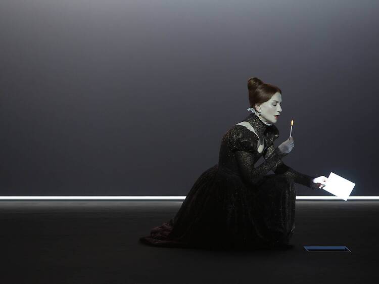 筆者は2019年、ウィーンで上演された本作を観たが、凄絶なほど美しい舞台空間と、その中に屹立(きつりつ)し、高い強度でよどみなく台詞をまくし立てるユペールの迫力に80分間、圧倒され通しだった。