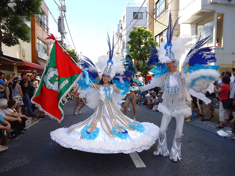 『三茶ラテンフェスティバル』が、今年も開催される。三軒茶屋駅近くの茶沢通りに面するふれあいひろばとラテン広場(西友 三軒茶屋店駐車場)を中心に、模擬店・各種ライブ・スイカ割りが開催されるほか、烏山川緑道でのミニボサノヴァライブライブ(24日)、茶沢通りでのサンバパレード(25日)など、三茶の町が賑やかなラテンムード一色になる。この祭りの見どころは、なんと言ってもサンバパレード。陽気なリズムで暑さを吹き飛ばそう。
