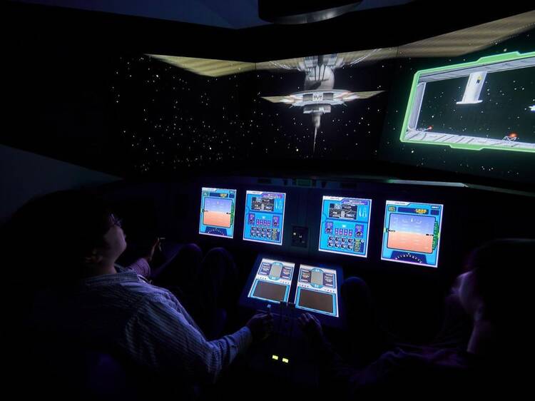 展示室の「スペース・ミッション・シミュレータ」では、未来のスペースプレーンを操縦する模擬体験が可能。さらに、退役機「YS-11」(機体番号YS-11-118)の計器類や機体構造を間近で体験できる。
