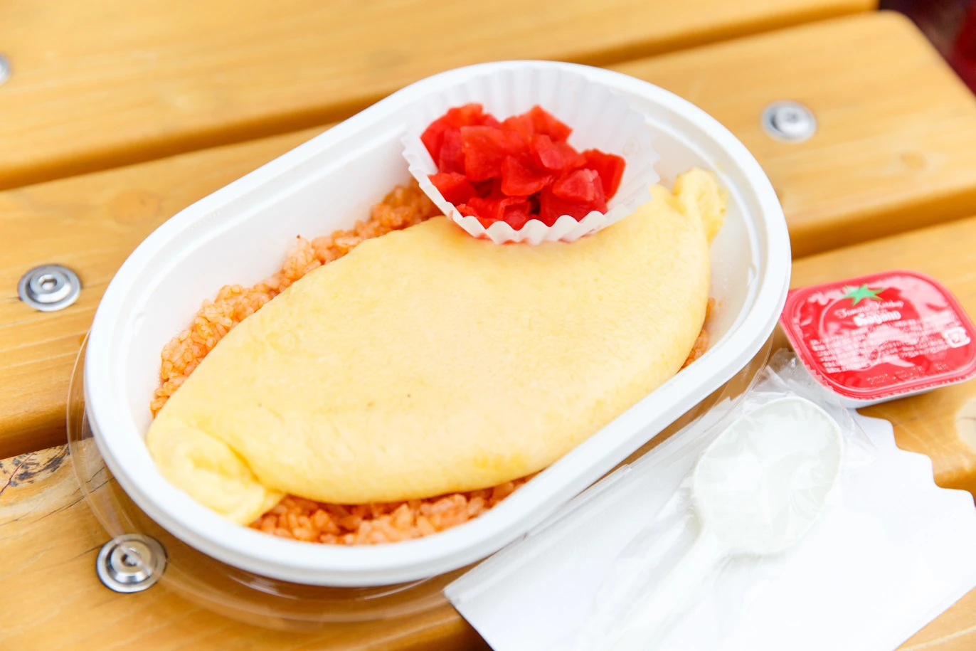人気の喫茶店、喫茶youのオムライス。購入を希望する場合は、個数や到着時間をあらかじめ電話で伝えておこう。店の前に到着したタイミングでまた電話をかけると、商品を持ってきてくれ、その場で会計もできる
