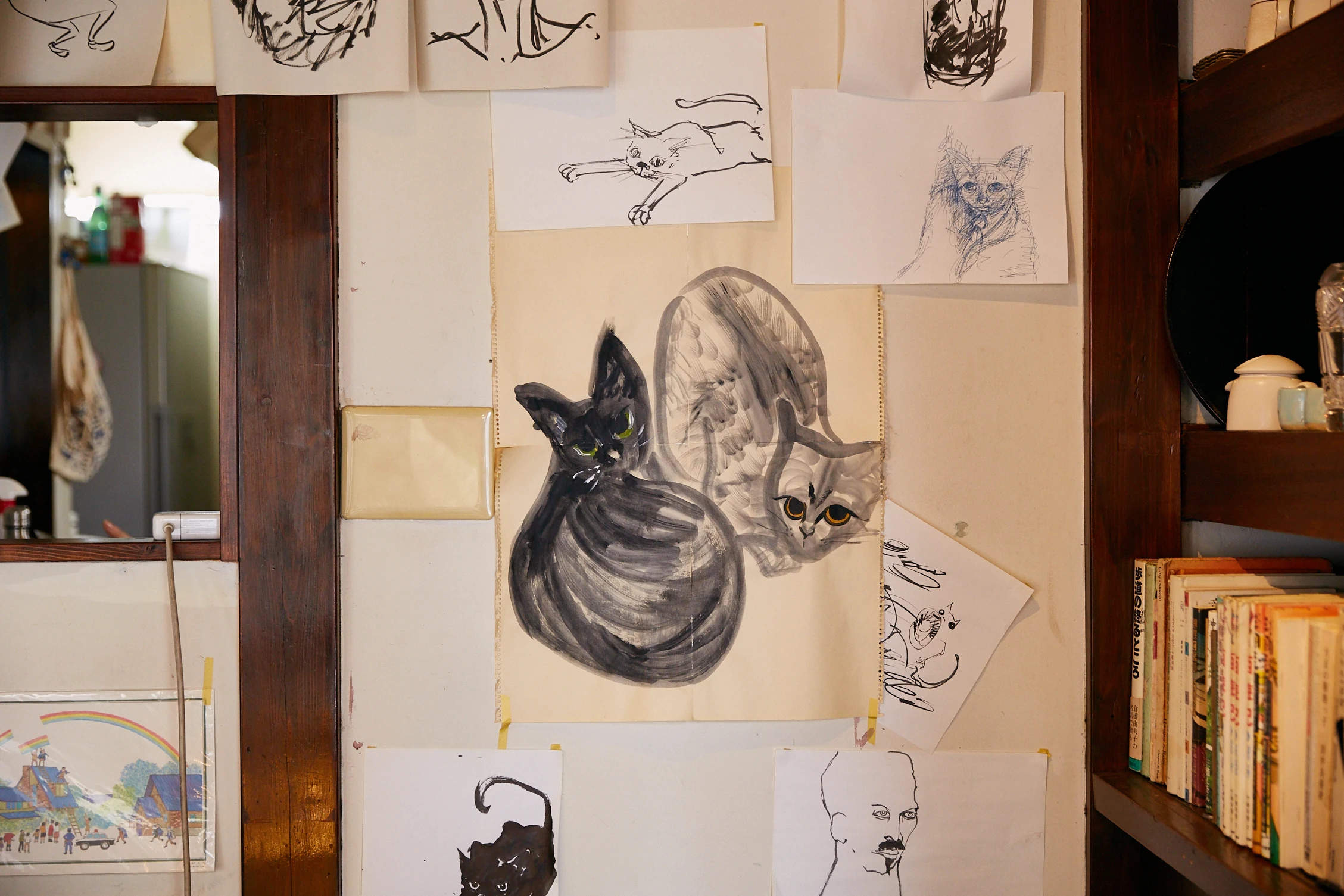 以前、店で展示を行った絵描きが描いたというクロとアオ
