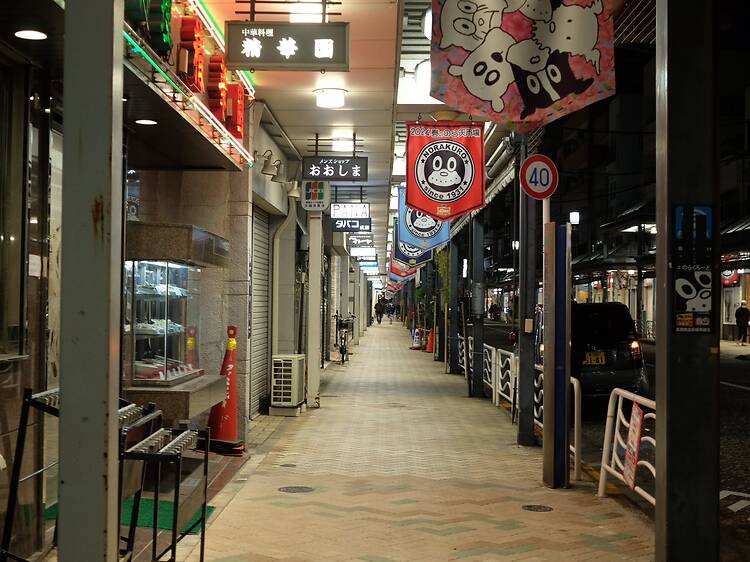 清澄白河の近くにある商店街。昔ながらの雰囲気が味わえつつ、古着屋やベルギービールの店など、しゃれた店も多い。