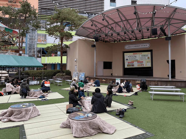 2026年の正月は、「ラクーアガーデン芝生広場」に登場するこたつで「ぬくぬく」しよう。同イベント限定の笑点「初笑い」映像を放映したり、笑点のメンバーと一緒に撮れる等身大フォトパネルが設置されていたり、こたつの座布団が番組お馴染みの柄だったりになっていたりと、笑いに包まれた時間が過ごせそう。